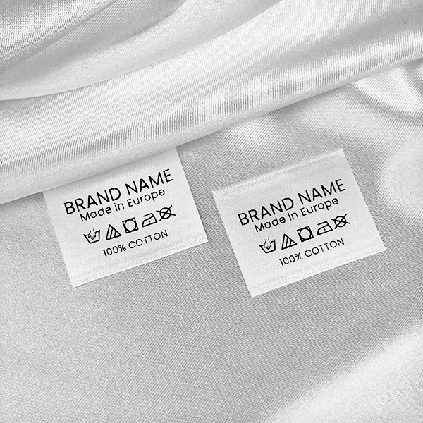 Metka tekstylna do ubrań i akcesoriów odzieżowych, wykonana z białej satyny, która zawiera oznaczenia prania i pielęgnacji, oraz skład tkaniny. Ten typ metki tekstylnej jest wytwarzany przy użyciu najbardziej zaawansowanych technologii w dziedzinie druku cyfrowego na podkładzie tekstylnym. Etykiety są drukowane na specjalnej satynie metodą termotransferową , o imponującej jakości druku i wysokiej odporności na pranie.