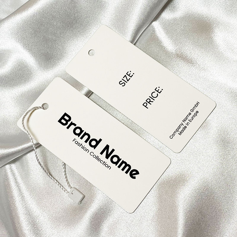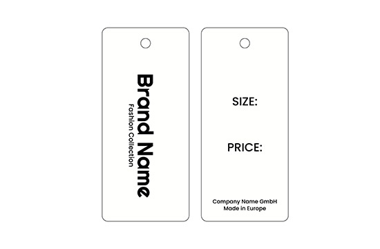 Tekturowa metka ze sznurkiem do zawieszania na ubraniach lub różnych akcesoriach odzieżowych, personalizowana nazwą marki lub logo, ale także innymi informacjami o produkcie, z nadrukiem po obu stronach. Ten typ zawieszanej metki jest wykonywany z wysokiej jakości materiałów, przy użyciu najbardziej zaawansowanych technologii w dziedzinie druku cyfrowego i wykończenia.