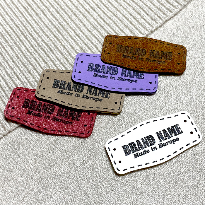 Spersonalizowana metka EP-M114 wykonana z syntetycznej skóry na ubrania, torebki, buty i różne dodatki odzieżowe.