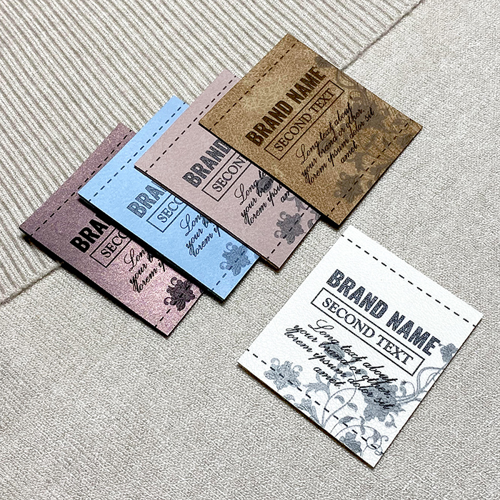 Ta Etykieta ze skóry syntetycznej Model EP-M141 może być spersonalizowana w kilka sekund, bardzo prosto i szybko za pomocą kreatora grafiki, który pozwala wybrać kolor sztucznej skóry, wstawić własne logo lub dowolną inną grafikę o złożonym wzorze, a także spersonalizować metkę za pomocą własnego tekstu, na przykład nazwy marki, sloganu, nazwy producenta i kraju, w którym produkt został wyprodukowany.