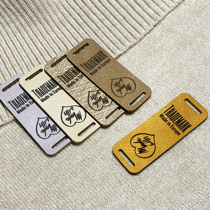 Personalizowane metki ze sztucznej skóry dla produktów handmade lub wykonanych w pracowniach krawieckich, Model EP-M165 wykonany z poliuretanu PU. Ten model metki ze sztucznej skóry wykonany jest z poliuretanu o wysokiej jakości, znanego również jako skóra syntetyczna, przy użyciu wysokiej klasy technik i urządzeń. Metki są wycinane laserowo zgodnie z wymiarami prezentowanymi na tej stronie, a personalizacja odbywa się poprzez grawerowanie laserowe z dokładnością do 0,2mm.