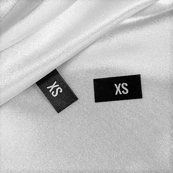 Metki z numerem produktu lub rozmiarem, wykonane na zamówienie z materiału włókienniczego, do przyszycia na ubraniach. Ten typ metki tekstylnej jest wytwarzany przy użyciu najbardziej zaawansowanych technologii w dziedzinie druku cyfrowego na podkładzie tekstylnym. Etykiety są drukowane na specjalnej satynie metodą termotransferową, o imponującej jakości druku i wysokiej odporności na pranie.