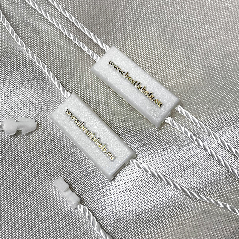 Plastikowa plomba ST-M126 o prostym prostokątnym kształcie, z indywidualnym tekstem, nazwą marki, znakiem, stroną internetową itp. oraz logo / emblematem, odpowiednia dla każdego rodzaju produktu z branży tekstylnej, odzieży, obuwia, toreb. Ten typ plomby jest wykonywany z wysokiej jakości materiałów, przy użyciu najbardziej zaawansowanych technologii w tej dziedzinie.