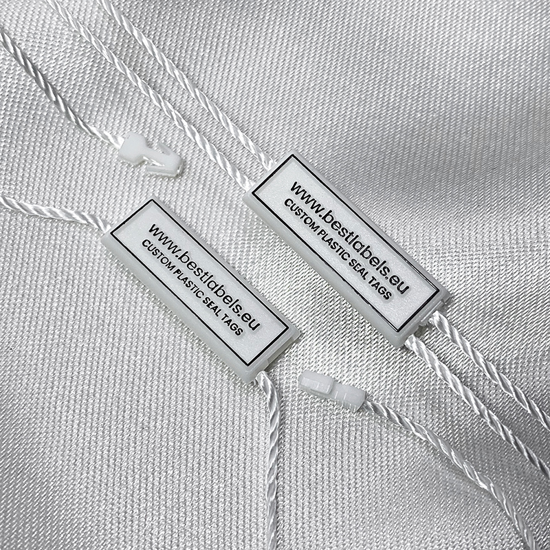 Plastikowe plomby na zamówienie ST-M147 do produktów modowych, takich jak ubrania, obuwie, torebki, biżuteria, akcesoria odzieżowe itp.