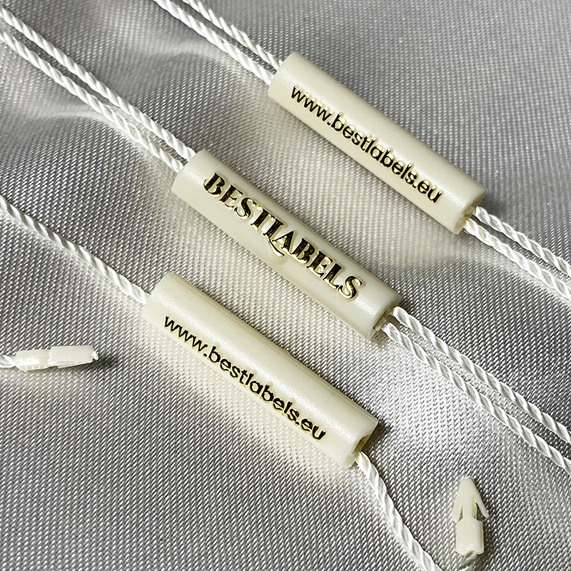 Plastikowa plomba ST-M233 z eleganckim wzorem o cylindrycznym kształcie z nazwą marki, idealna do produktów takich jak odzież damska i męska, buty, biżuteria, zegarki itp. Ten typ plomby jest wykonywany z wysokiej jakości materiałów, przy użyciu najbardziej zaawansowanych technologii w tej dziedzinie.