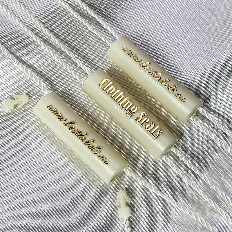 Plastikowa plomba ST-M254 z eleganckim wzorem o cylindrycznym kształcie z nazwą marki, idealna do produktów takich jak odzież damska i męska, buty, biżuteria, zegarki itp. Ten typ plomby jest wykonywany z wysokiej jakości materiałów, przy użyciu najbardziej zaawansowanych technologii w tej dziedzinie.