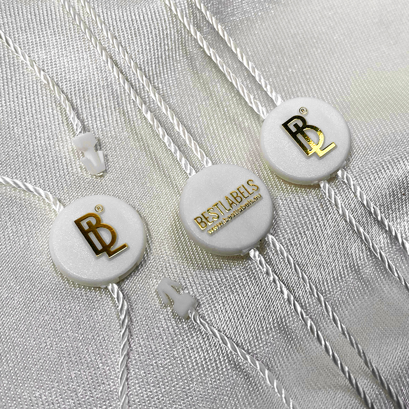Plastikowa plomba ST-M54 o okrągłym kształcie, bardzo elegancka i piękna, nadrukowana z dwóch stron nazwą marki lub emblematem, odpowiednia na ubrania, buty, torby itp. Ten typ plomby jest wykonywany z wysokiej jakości materiałów, przy użyciu najbardziej zaawansowanych technologii w tej dziedzinie.