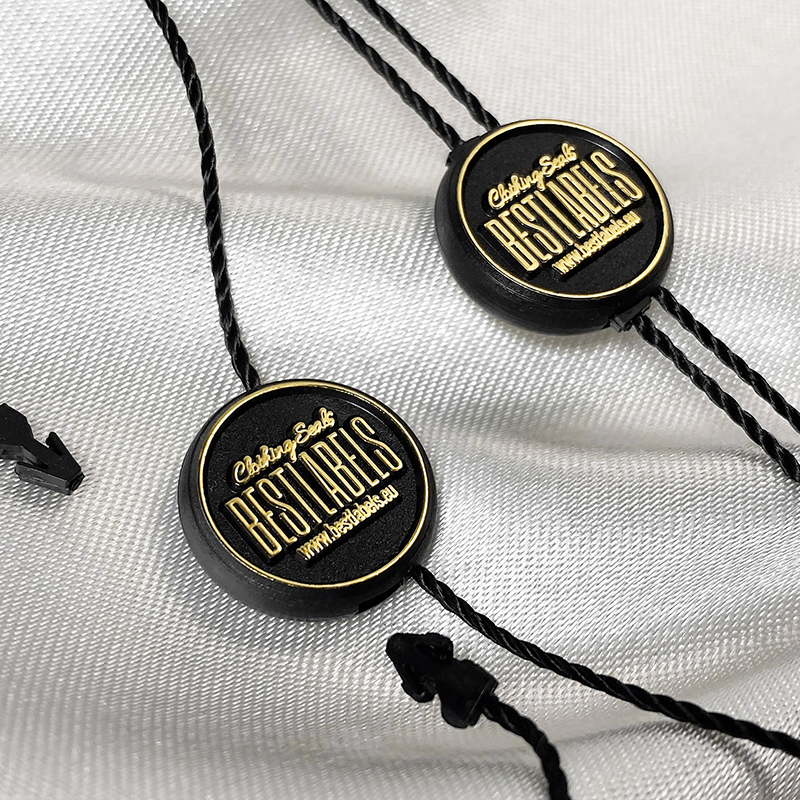 Plastikowa plomba ST-M80 o okrągłym kształcie, bardzo elegancka i piękna, nadrukowana z dwóch stron nazwą marki lub emblematem, odpowiednia na ubrania, buty, torby itp. Ten typ plomby jest wykonywany z wysokiej jakości materiałów, przy użyciu najbardziej zaawansowanych technologii w tej dziedzinie.