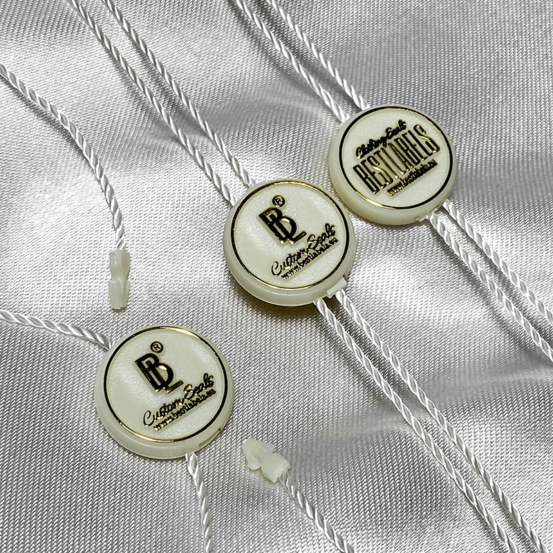 Plastikowa plomba ST-M92 o okrągłym kształcie, bardzo elegancka i piękna, nadrukowana z dwóch stron nazwą marki lub emblematem, odpowiednia na ubrania, buty, torby itp. Ten typ plomby jest wykonywany z wysokiej jakości materiałów, przy użyciu najbardziej zaawansowanych technologii w tej dziedzinie.