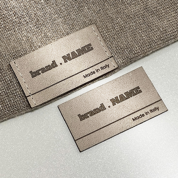 Spersonalizowana metka EP-M22 wykonana z naturalnej skóry na ubrania, torebki, buty i różne dodatki odzieżowe.