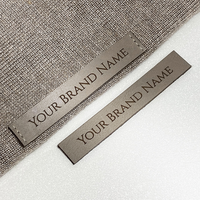 Spersonalizowana metka EP-M27 wykonana z naturalnej skóry na ubrania, torebki, buty i różne dodatki odzieżowe.