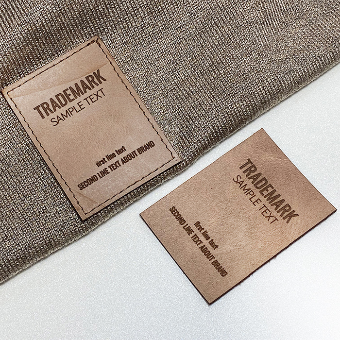 Spersonalizowana metka EP-M39 wykonana z naturalnej skóry na ubrania, torebki, buty i różne dodatki odzieżowe.