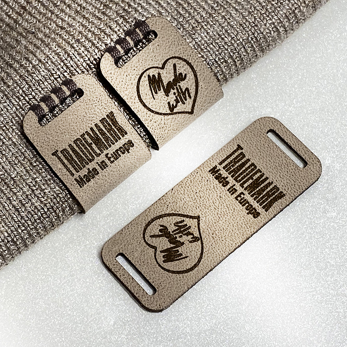 Spersonalizowana metka EP-M65 wykonana z naturalnej skóry na ubrania, torebki, buty i różne dodatki odzieżowe.