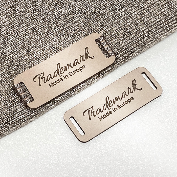 Spersonalizowana metka EP-M69 wykonana z naturalnej skóry na ubrania, torebki, buty i różne dodatki odzieżowe.