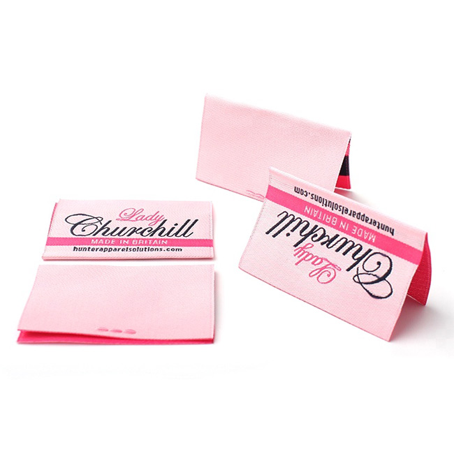 Wszywka tkana zgięta w połowie, dostosowywana z Digital High Density haftowanymi napisami.